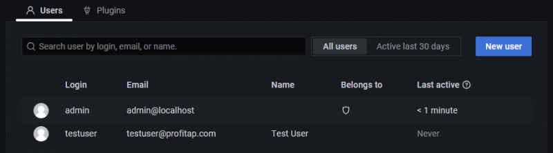 To add a user account, click the New user button, fill in the fields, and click the Create user button.