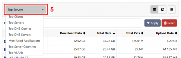 Top Applications, Clients, Servers, DNS Queries, DNS Servers
