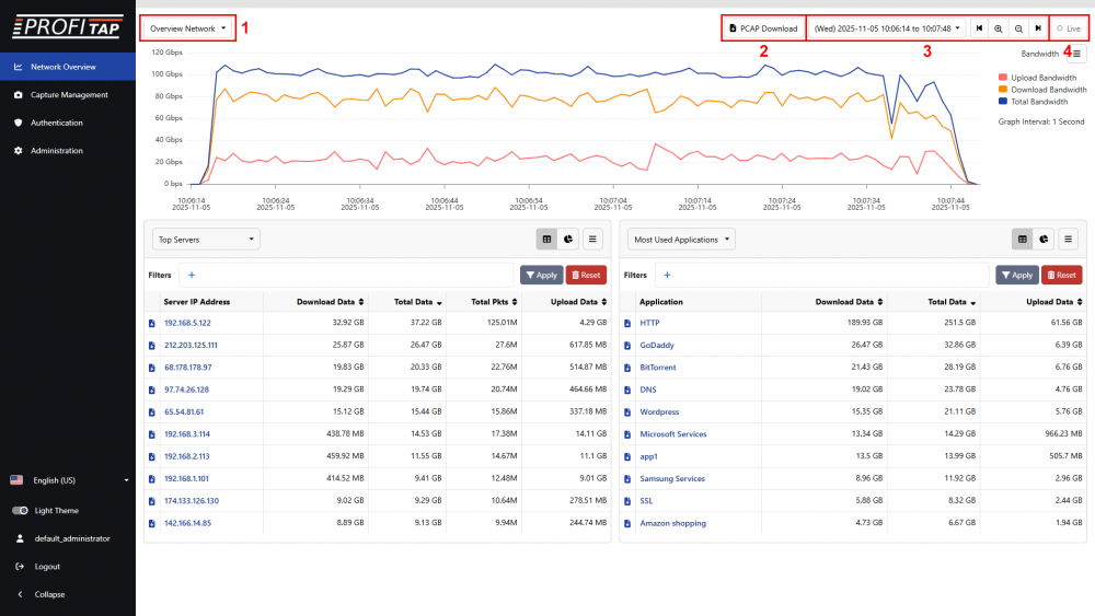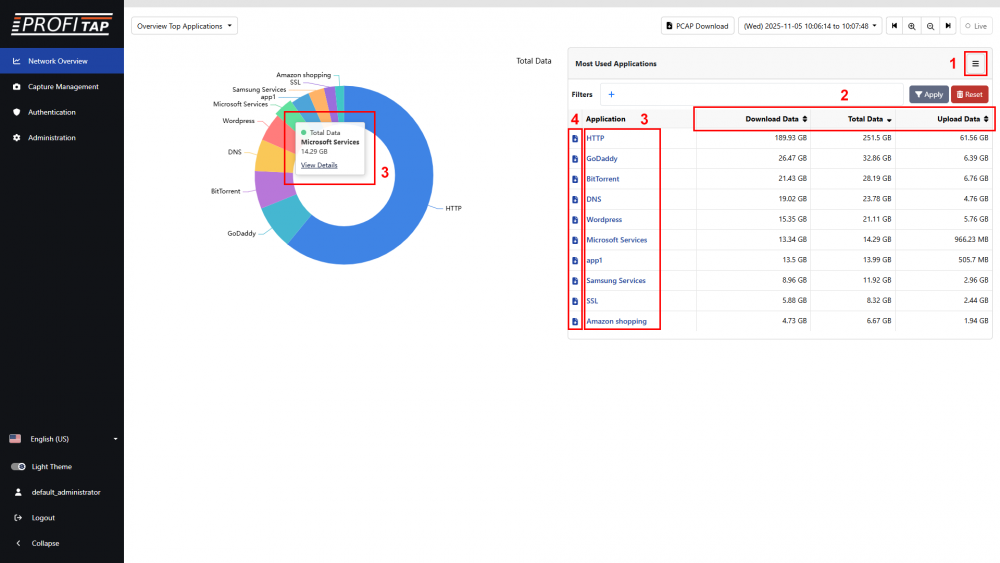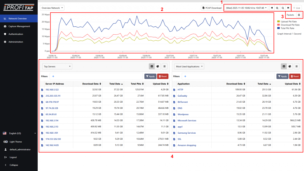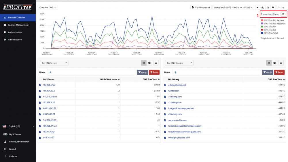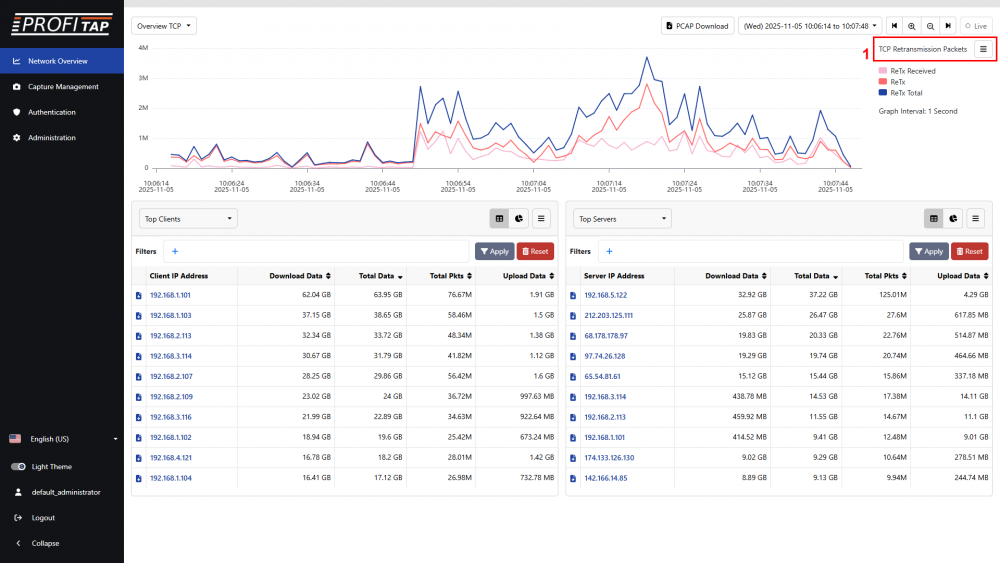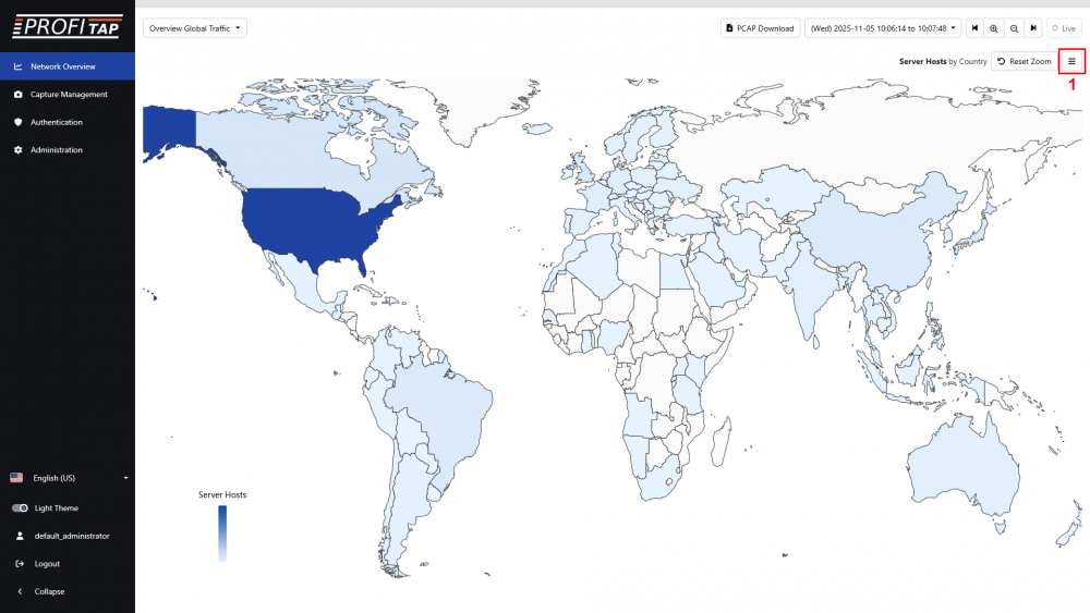 [2] The PCAP Download button allows you to download the raw data for the selected time range and filters in PCAPNG file format.
