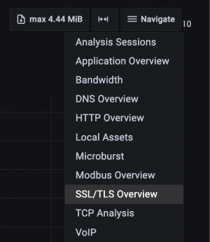 Figure 6: Switching to the SSL/TLS Overview dashboard via the Navigate menu.