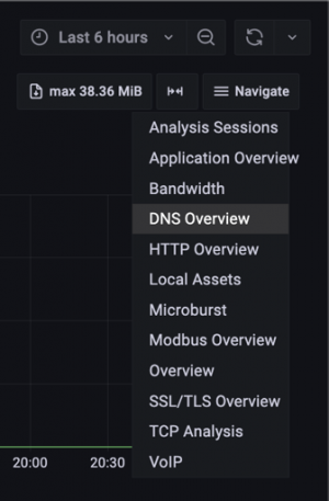 Figure 8: Switch to DNS Overview dashboard via Navigate menu.