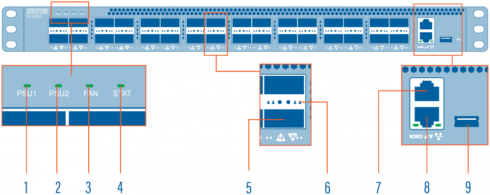 XX-3200G interfaces - front