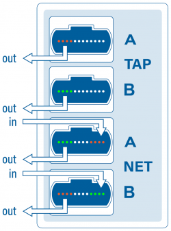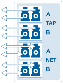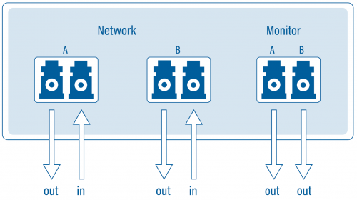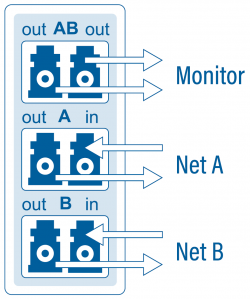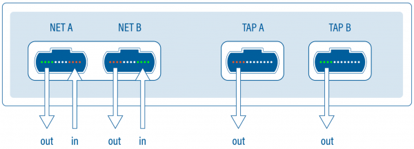 Note: Monitor/TAP/out A port outputs a copy of the traffic received on Network A, while Monitor/TAP/out B port outputs a copy of the traffic received on Network B.
