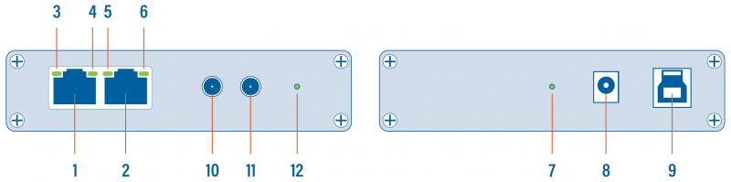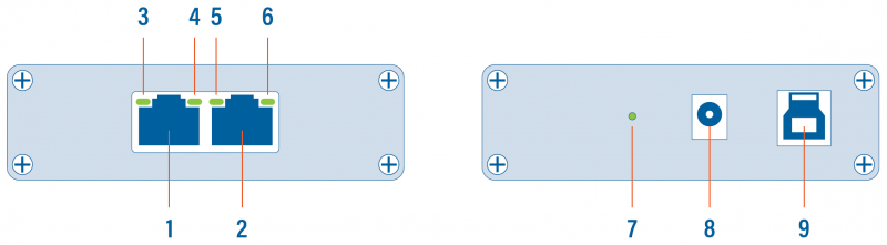 | 1, 2 | RJ45 Ethernet port A and B |
