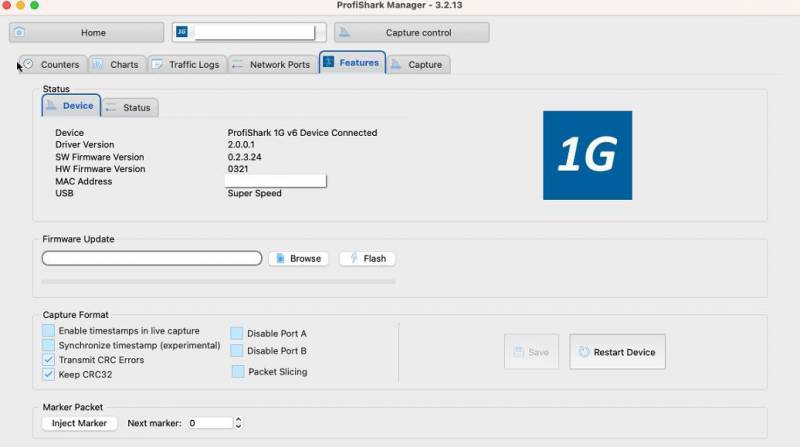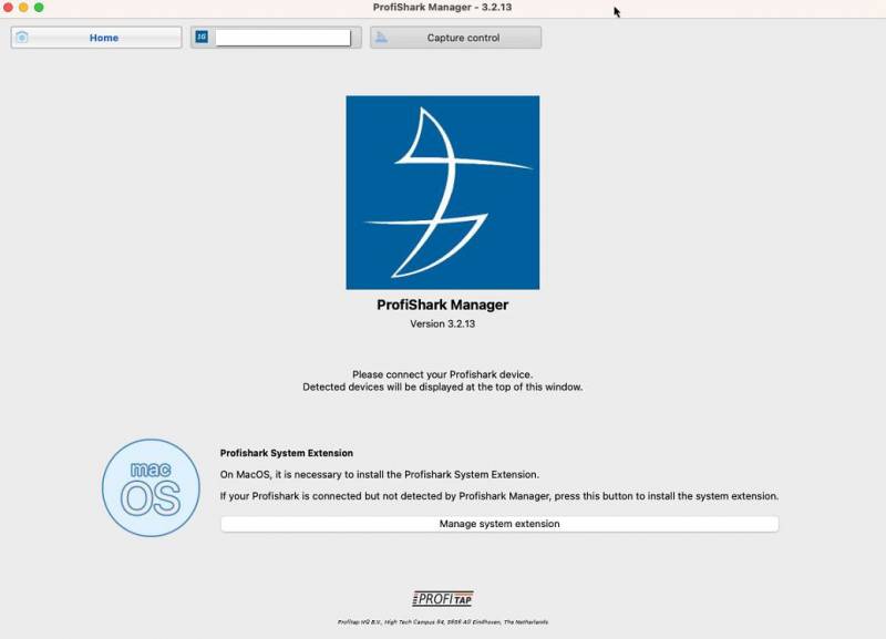 Once the system extension is installed, reboot the host. Connected ProfiShark devices should now be detected and displayed in the ProfiShark Manager.