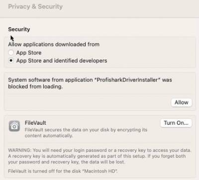 Run the installer v1.0.35 from the ProfiShark USB key's “macOS” folder.