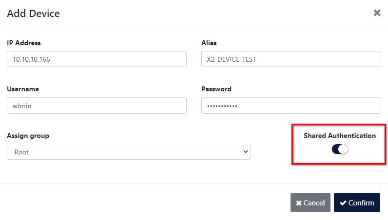 Step 1: Register a device on Supervisor, or edit an existing device, and enable the “Shared Authentication” option.