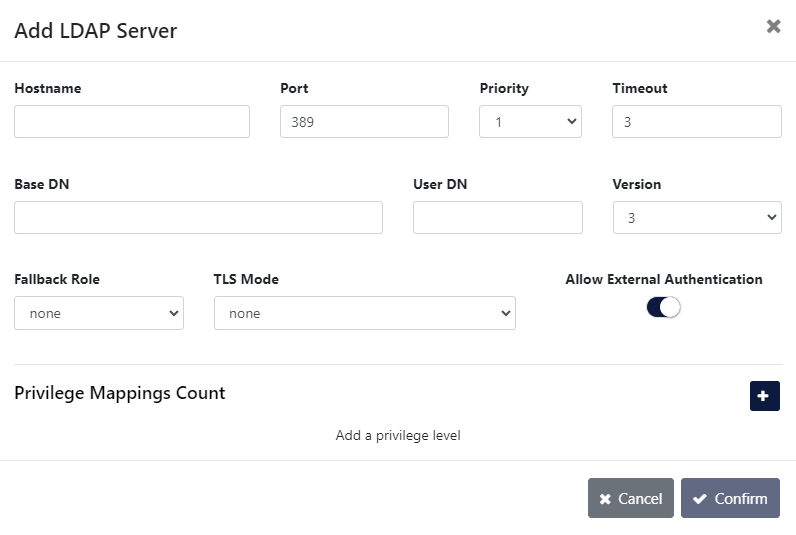 The LDAP tab offers the possibility to configure one or more LDAP servers for user authentication. In order to set up the LDAP access, the following settings are required:
