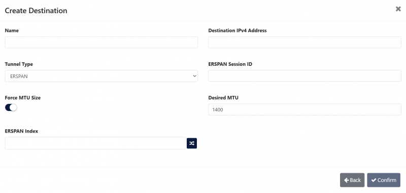 - Select the tunnel type (GRE-TAP/VXLAN/ERSPAN).