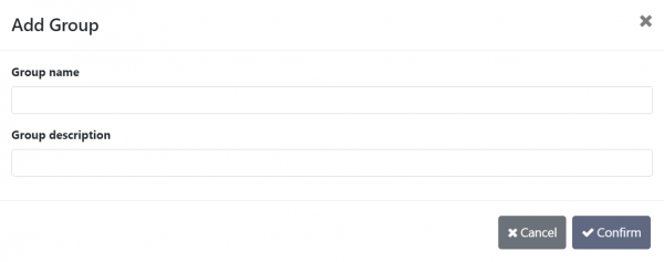 To create a group, click the Add Group button, and enter the group name and description in the Add Group window. The group's name and description can be changed at a later time by clicking the group's Edit button.