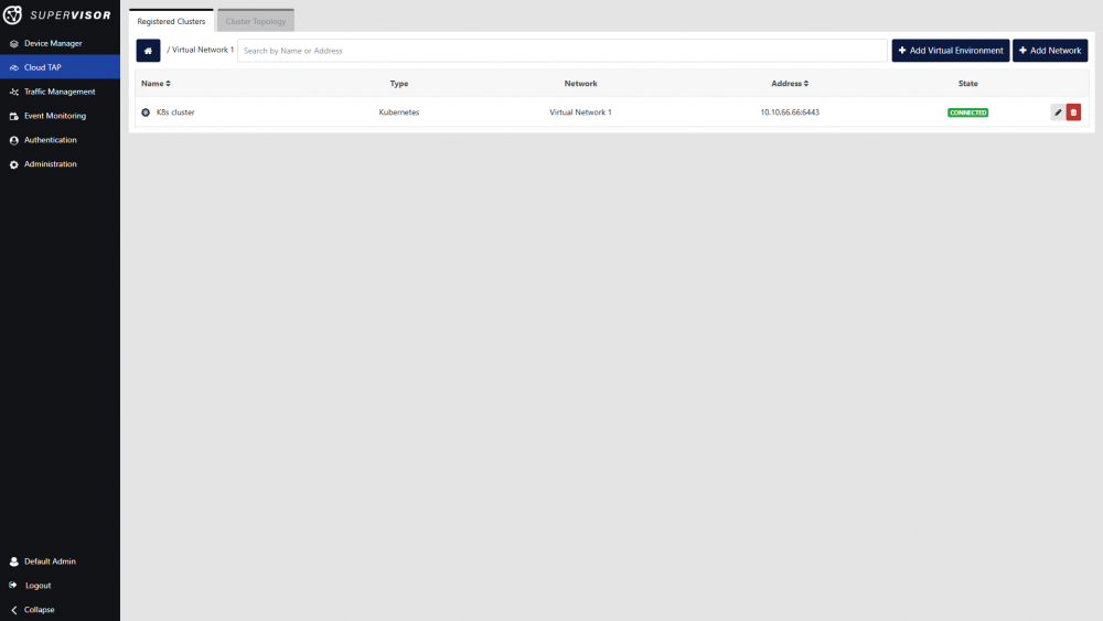 The new environment will appear in the list of registered clusters, and its state will display CONNECTED if Supervisor is able to communicate with it.