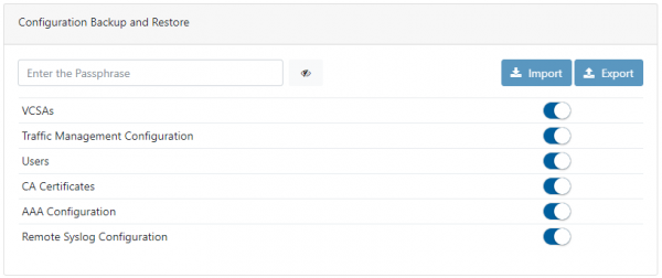 Note: The same passphrase as the one used for exporting the configuration file is required for importing it.