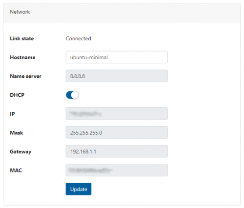 The Network section provides information about the vTAP network information, and the ability to edit it. The IP, Mask, and Gateway fields can be edited if DHCP is disabled.